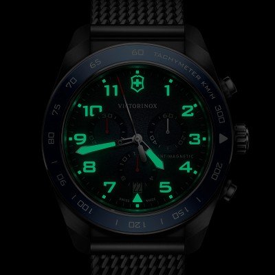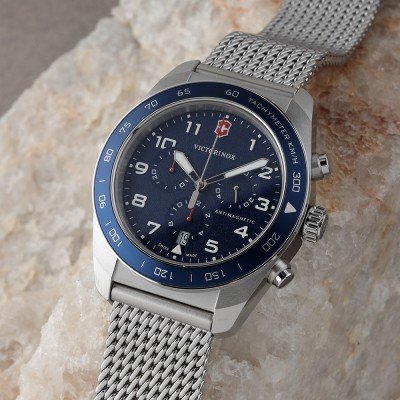 Este relógio Victorinox tem uma caixa de Inox com um diâmetro de 42 mm e está equipado com uma bracelete de Inox. A caixa possui um movimento Ronda e o relógio tem um vidro Safira anti-reflexo única.