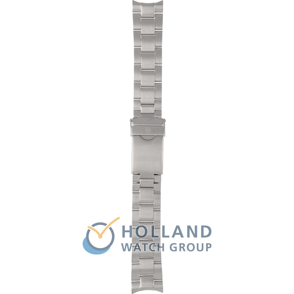 Esta bracelete de relógio Victorinox é feita de aço inoxidável e está fixada ao relógio através de pinos de pressão. A bracelete tem uma largura de 18 mm e fecha através de fivela dobrável com segurança. A bracelete não tem uma montagem a direito, o que significa que esta bracelete só é adequada para os relógios listados abaixo.