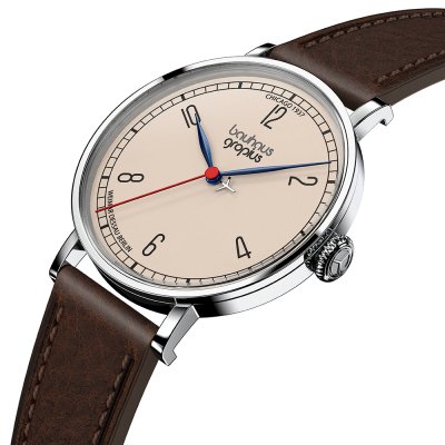 Este relógio Walter Gropius tem uma caixa de Inox com um diâmetro de 38 mm e está equipado com uma bracelete de couro. A caixa possui um movimento Miyota e o relógio tem um vidro Safira dupla anti-reflexo.