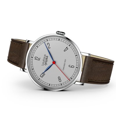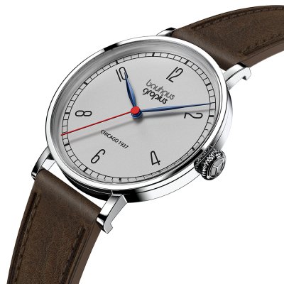 Este relógio Walter Gropius tem uma caixa de Inox com um diâmetro de 38 mm e está equipado com uma bracelete de couro. A caixa possui um movimento Miyota e o relógio tem um vidro Safira dupla anti-reflexo.