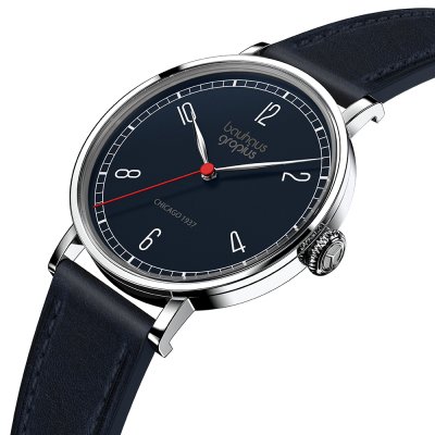 Este relógio Walter Gropius tem uma caixa de Inox com um diâmetro de 38 mm e está equipado com uma bracelete de couro. A caixa possui um movimento Miyota e o relógio tem um vidro Safira dupla anti-reflexo.