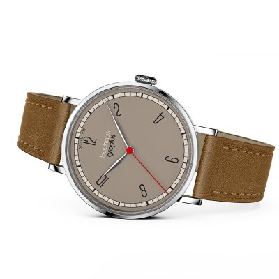 Este relógio Walter Gropius tem uma caixa de Inox com um diâmetro de 38 mm e está equipado com uma bracelete de couro. A caixa possui um movimento Miyota e o relógio tem um vidro Safira dupla anti-reflexo.