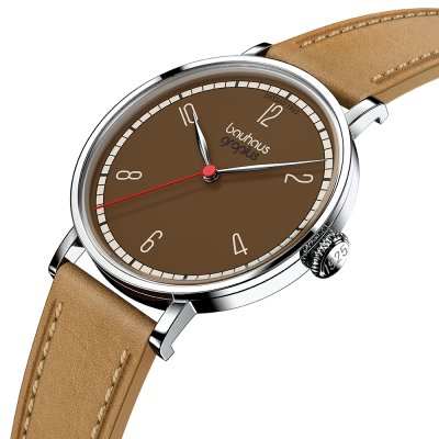 Este relógio Walter Gropius tem uma caixa de Inox com um diâmetro de 38 mm e está equipado com uma bracelete de couro. A caixa possui um movimento Miyota e o relógio tem um vidro Safira dupla anti-reflexo.