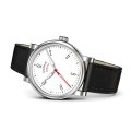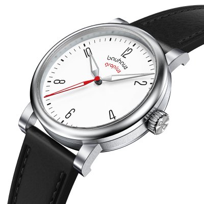 Este relógio Walter Gropius tem uma caixa de Inox com um diâmetro de 40 mm e está equipado com uma bracelete de couro. A caixa possui um movimento Seiko Instruments Inc. e o relógio tem um vidro Safira dupla anti-reflexo.
