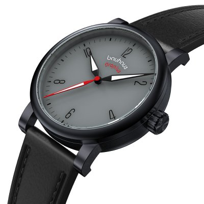 Este relógio Walter Gropius tem uma caixa de Inox com um diâmetro de 40 mm e está equipado com uma bracelete de couro. A caixa possui um movimento Seiko Instruments Inc. e o relógio tem um vidro Safira dupla anti-reflexo.