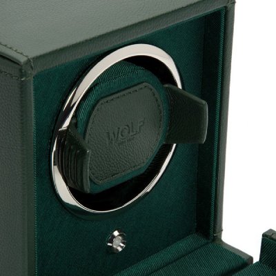 Este enrolador de relógio verde Cub da Wolf é elegante, tem um design intemporal, mas ainda é um pouco diferente por causa da sua cor. Perfeito se está à procura de algo que chame a atenção! O enrolador de relógio tem um único módulo de enrolamento, hardware cromado, funciona com bateria e eletricidade e é feito de couro vegan. Uma vantagem adicional é a capa, que protege seu relógio automático contra sujidade e danos.