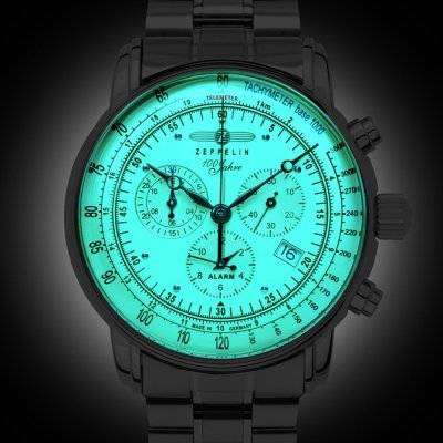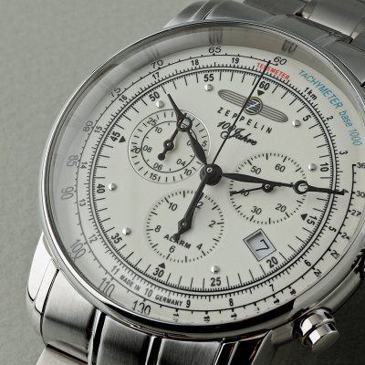 Este relógio Zeppelin tem uma caixa de Inox com um diâmetro de 42 mm e está equipado com uma bracelete de Inox. A caixa possui um movimento Ronda e o relógio tem um vidro K1 Mineral.