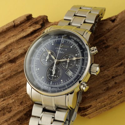 Este relógio Zeppelin tem uma caixa de Inox com um diâmetro de 42 mm e está equipado com uma bracelete de Inox. A caixa possui um movimento Ronda e o relógio tem um vidro K1 Mineral.