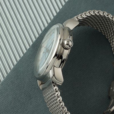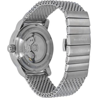 Este relógio Zeppelin tem uma caixa de Inox com um diâmetro de 42 mm e está equipado com uma bracelete de Inox. A caixa possui um movimento Miyota e o relógio tem um vidro K1 Mineral.