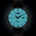 Este relógio Zeppelin tem uma caixa de Inox com um diâmetro de 40 mm e está equipado com uma bracelete de couro. A caixa possui um movimento Ronda e o relógio tem um vidro K1 Mineral.