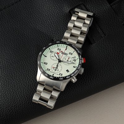 Este relógio Zeppelin tem uma caixa de Inox com um diâmetro de 43 mm e está equipado com uma bracelete de Inox. A caixa possui um movimento ETA e o relógio tem um vidro K1 Mineral.