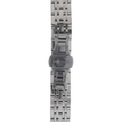 Esta bracelete de relógio Zeppelin é feita de aço inoxidável e está fixada ao relógio através de pinos de pressão. A bracelete tem uma largura de 18 mm e fecha através de fivela borboleta. A bracelete tem uma montagem a direito, o que significa que esta bracelete é adequada para todos os relógios Zeppelin com montagem da bracelete a direito.