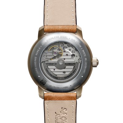 Este relógio Zeppelin tem uma caixa de Inox com um diâmetro de 40 mm e está equipado com uma bracelete de couro. A caixa possui um movimento Miyota e o relógio tem um vidro K1 Mineral.