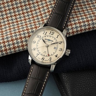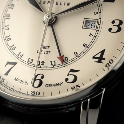 Este relógio Zeppelin tem uma caixa de Inox com um diâmetro de 42 mm e está equipado com uma bracelete de couro. A caixa possui um movimento Ronda e o relógio tem um vidro K1 Mineral.