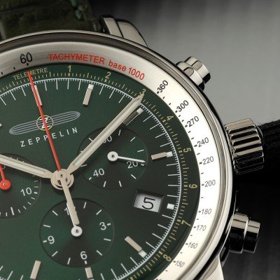 Este relógio Zeppelin tem uma caixa de Inox com um diâmetro de 42 mm e está equipado com uma bracelete de couro. A caixa possui um movimento Ronda e o relógio tem um vidro K1 Mineral.