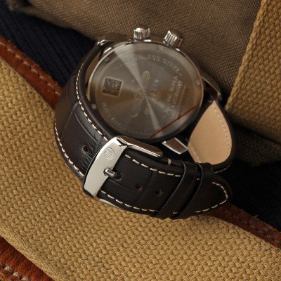 Este relógio Zeppelin tem uma caixa de Inox com um diâmetro de 42 mm e está equipado com uma bracelete de couro. A caixa possui um movimento Ronda e o relógio tem um vidro K1 Mineral.