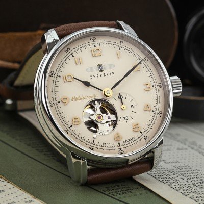 Este relógio Zeppelin tem uma caixa de Inox com um diâmetro de 40 mm e está equipado com uma bracelete de couro. A caixa possui um movimento Miyota e o relógio tem um vidro K1 Mineral.