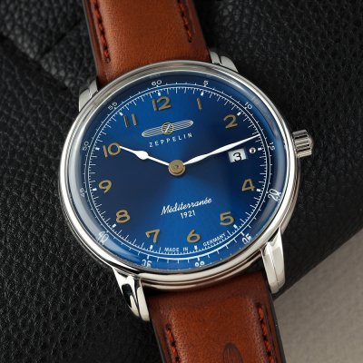Este relógio Zeppelin tem uma caixa de Inox com um diâmetro de 40 mm e está equipado com uma bracelete de couro. A caixa possui um movimento ETA e o relógio tem um vidro K1 Mineral.